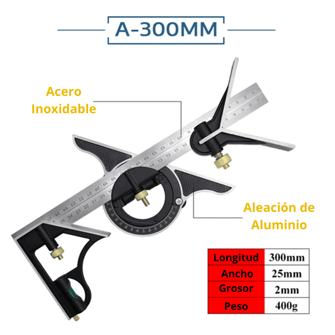 Escuadra Combinada PRO de 12” – Precisión y Versatilidad en una Sola Herramienta