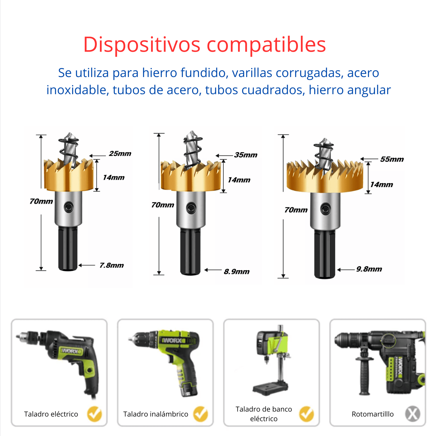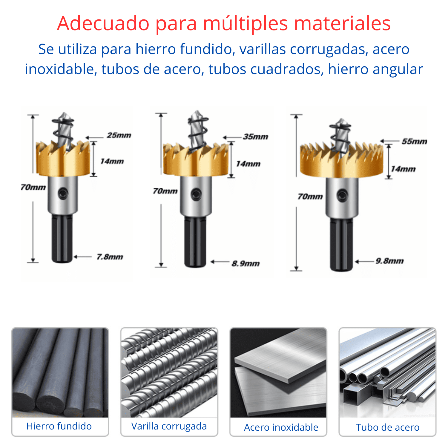 ✅ Aplicaciones: Metal, acero, plástico, madera